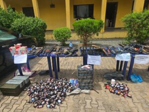 4. ARREST OF A YOUTH LEADER IN POSSESSION OF AK 47-RIFLE AND FORTY-FOUR ROUNDS OF 7.62MM AMMUNITION: On the 15th of March 2025, at about 1030 hours, the DPO Ekpan Police station received information that one Victor Edavwe ‘m’ the youth president of Ekpan community was suspected to have recently purchased an AK-47 rifle. The DPO Ekpan division led operatives to Shrine Street in Ekpan where the suspect Victor Edavwe was arrested and taken to the Police station for questioning. During the interrogation, suspects gave useful information that corroborated the information received by the DPO and led the operatives to the house of one Efe (surname unknown) AKA ‘Eteyomo’ and a search was conducted in the premises during which one AK-47 rifle, one single barrel gun, three cutlasses, two daggers and Forty-four rounds of 7.62mm live ammunition wrapped in a black sack and concealed on the roof of the sitting room were recovered. The suspects are in custody and investigation is ongoing.