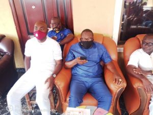 Dr. Ifeanyi Osuoza, Delta PDP State Publicity Secretary (middle), with Mr. Chuks Oseme, Aniocha North Council Chairman, left and another leader at the reconciliation meeting.