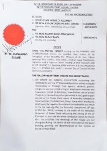 They are also restrained from interfering with the activities of Rt. Hon. Edison Ogerenye Ehie as Speaker of the Rivers State House of Assembly.