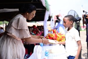 Highlights of the children Christmas party was the cutting of the cake by the governor’s wife, flanked by dignitaries present and the distribution of gifts children from the twenty five local government areas.