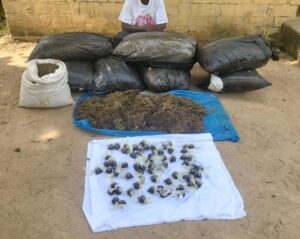 A search of the premises led to the recovery of eight bags of weeds suspected to be Indian hemp. The suspect allegedly admitted ownership of the exhibits and confessed to dealing in illicit drugs.