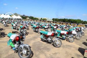 Motor cycles given out during the Ndudi Elimelu’s Empowerment Scheme.