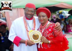 Obi Mohanyem shares the joy with his wife on her investiture as the Nnediohnma of Ezi Kingdom.