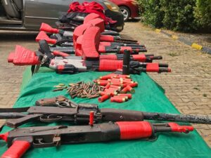 A preliminary recovery included five pump-action guns and a Beretta pistol. Further interrogation revealed Kunu, a suspected member of the Aye confraternity, also possessed an AK-47 rifle.