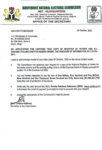The Media Rights Agenda (MRA) has condemned the Independent National Electoral Commission (INEC) for what it described as an outrageous and illegal attempt to frustrate access to public information by demanding over ₦1.5 billion as the cost for releasing a copy of the National Register of Voters and the list of polling units in Nigeria.