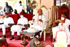 In his remarks shortly after cutting his 30th coronation and 97th birth anniversary cake, Obi Chike Edozie expressed appreciation to Governor Okowa for the monumental infrastructural growth and development of the state and for being part of his anniversaries celebration.