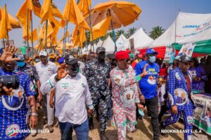 He said: “I am very happy to be here today seeing the crowd and I want to assure you that Ndokwa Nation will be part of my Government in Jesus’ Name, Amen. I know what His Excellency has been doing here, and I want to assure you all that I will do MORE if elected Governor next year”.