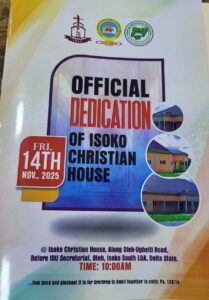He expressed heartfelt appreciation to the Isoko Christian community for their vision, sacrifice and steadfast faith, praying that the Isoko Christian House will remain filled with God’s presence, echo with songs of praise, and stand forever as a beacon of hope and transformation.