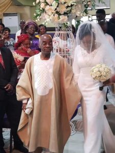 Bishop Oyedepo walks his daughter, Joy up to the aisle.