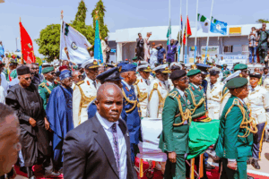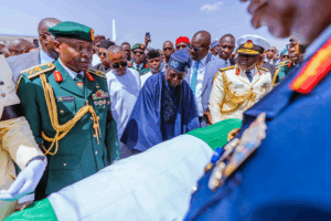 President Tinubu and others walked behind the casket trolley in a solemn procession. The pallbearers escorted the casket into a waiting military hearse for the one-hour journey to Daura, where funeral prayers and the burial ceremony would take place.