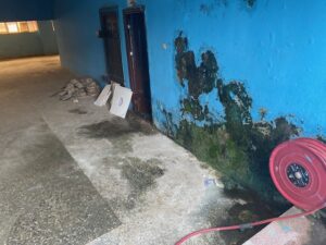 A visit by banneronlinenews to the Stadium Tuesday, August 19, 2025 afternoon, showed a dreadful sight of a neglected, dingy, grimy toilet, with a surrounding exuding putrefying odour and a decaying wall now eaten up by the fast spreading horrifying green colours of spirogyra organisms. The bowls in the toilet and doors are in a state of disrepair, while the walls drip water from the top, thus flooding the ground and making access to the toilet uneasy.